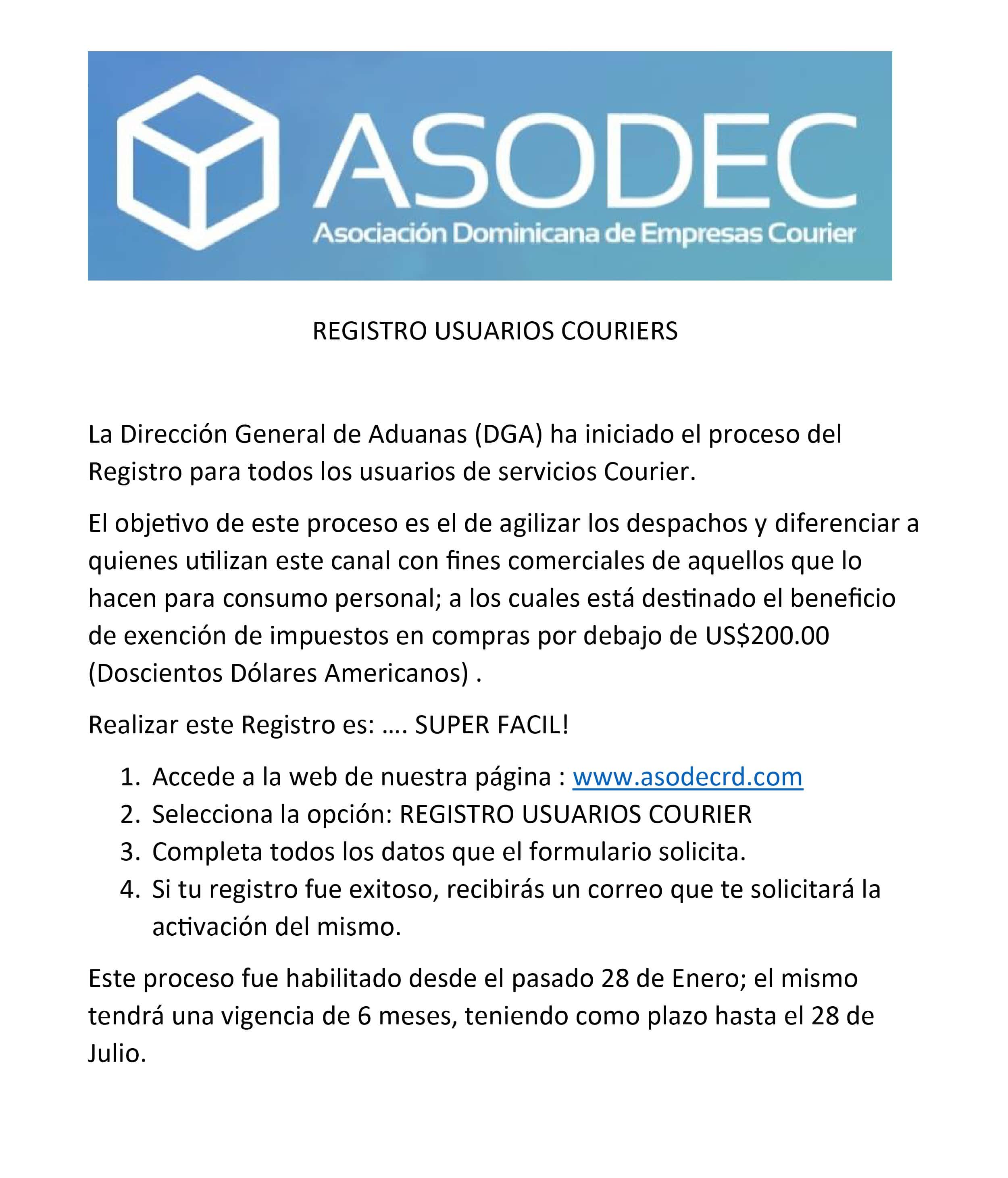 AVISO IMPORTANTE: Usuarios de Courier deben registrarse en pagina DGA